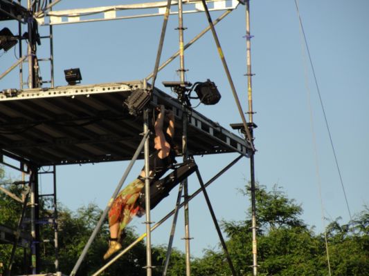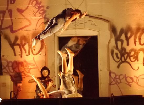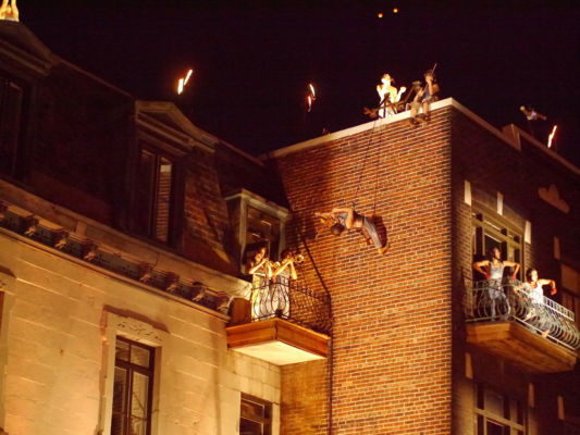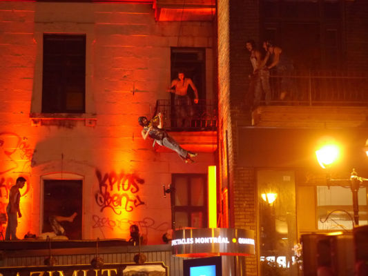 In 2014 and 2015, I performed various acrobatic and aerial disciplines in the streets of Montreal as part of the Montréal Complètement Cirque festival. For Babel Remix, I played the fiddle on a platform two stories above the outdoor stage. In the evening, I rappelled headfirst off the roof of a four-story building on the corner of Rue St. Denis and Ontario…still playing the fiddle.