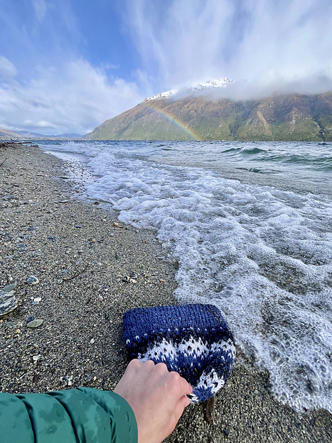 My first version of this hat got sucked into New Zealand’s Lake Wakatipu. Named after the mythical giant slumbering at the bottom of the lake, Matau makes a great first colourwork project. Choose between a minimum of two colours for a simple, graphic look, or use as many as possible to turn it into a stashbuster!